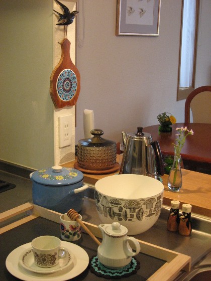 つばめ君を見て、「欲しい~」とLeksakさんにお願いしたのです。キッチンにいる時間が長いので、そこから良く見える場所に飾ってみました。
