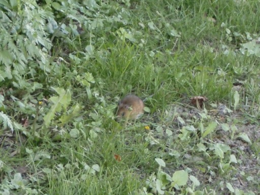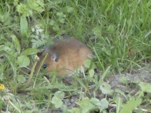 森の道で小さな手のひらサイズの森の住人、野ねずみと遭遇!!
