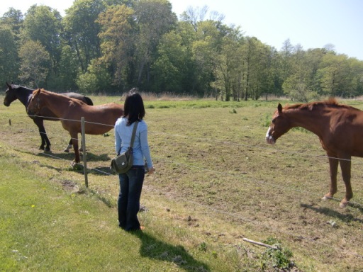 森を抜ける前に、いつもいてるお馬さんに久しぶりにあいさつ中の私(笑)
