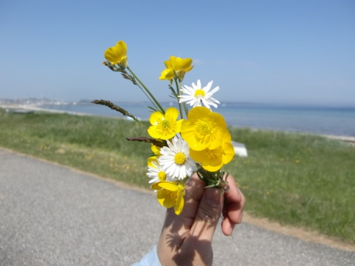 海の目の前にあるサマ―ハウスの横、お花畑になってました!思わずお花摘み!