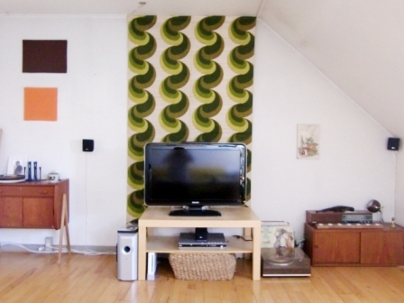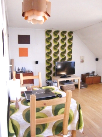 見かけだけでは分からなかったのですが、どうやらデッドストックだったようで手触りも色めも新品!凄い掘り出し物です!!!ちょうど同じところに掛けていた茶色のテーブルクロスが、「夏には色がちょっと暑すぎるねー」と旦那っちと話していたところだったので最高のものが見つかって大満足★