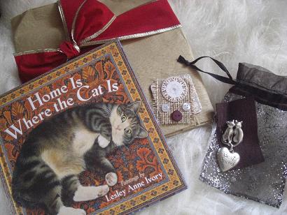 それはそれはかわいらしいラッピングを開けると、私達が共通で大好きな猫ちゃんの絵本。それにどこかアンティークさを感じる猫ちゃんのブローチ