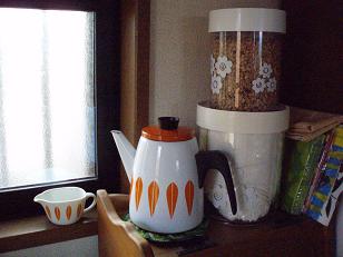 こちらは植物のお水やりや、一人分の卵料理をするのに使っていただいているそうです♪それにしても、Erik Koldのキャニスターやドイリー、ペーパーナフキン・・・かわいいものが揃っていますよね!!