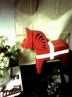 こちらは幸せを呼ぶと言われているダーラナホースです。真っ赤なボディーにデンマークの国旗をモチーフにしているデザインのものでした。
