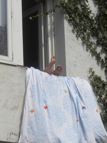 さて2枚目。しばらく歩いていると何と窓に布団を干して、足を日向ぼっこさせている誰かさんを発見!!これは写真に収めにゃ!と思ってキョロキョロして1枚パチリ(笑)見てるだけで気持ち良さそうでした。⇒