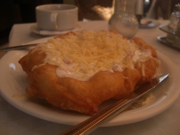 ・・・といいつつもしっかりご飯はおいしく頂きました!左はハンガリー名物「Langosランゴシュ」。チーズとクリームで朝ごはんにいい感じ♪