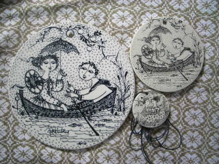 さて、今回の出品の中で私も前から欲しくて、やっと見つけたものをご紹介。それは、ウィンブラッドの作品でよく見かける「マンスリープレート」なんですが、よく見かけるものとは違うサイズのものなんです!普通のマンスリープレートは直径約15cm。今回はひとまわりもふたまわりも小さい2種類です。Sサイズは直径約9cm。飾りやすいおサイズのものですね。そしてXSはなんともカワイイ直径4.5cmです!