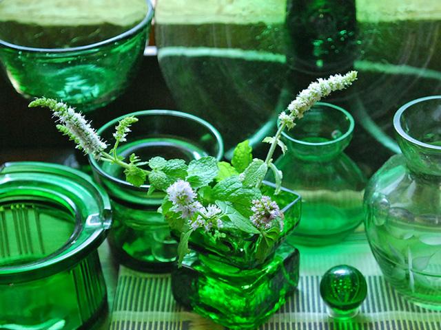 真ん中にミントを挿して今回の商品を置いてくださっていますが、左後ろのキャンドルスタンドはDANSKのヴィンテージだそうです!ステキです!!