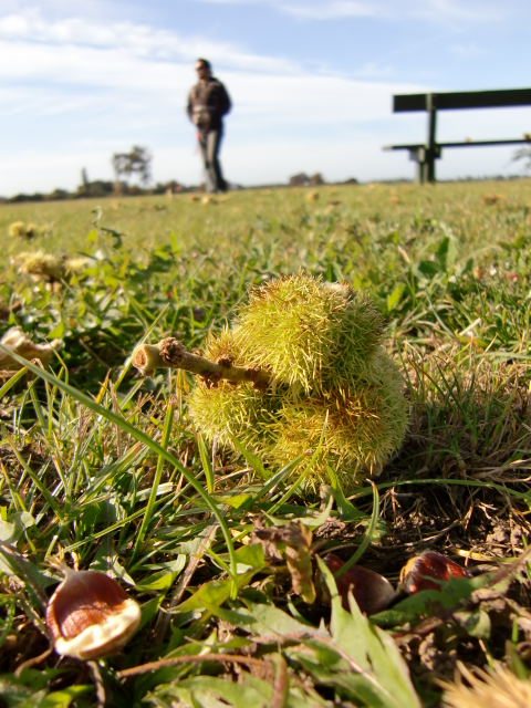 森のスグ横にある広場は海と繋がっていて、水と緑が楽しめます。そこで、栗の木を見つけました。栗と言っても日本のものとは大違いのデンマークの栗達。決して食べる事はできません、だって、苦いんだもの!!初めて拾ったときはショックでした・・・。