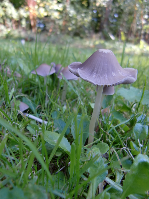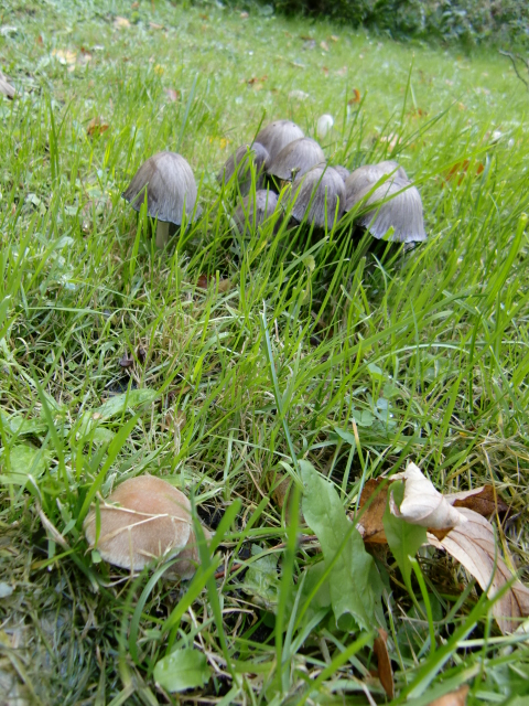 森の散歩も終わりに近づく頃、丁度出口のあたりに、いましたいました・・・「きのこ」!秋になると森のあちこちで見かけるんですが、今年は私たちにとって初めての自然きのこ。カワイイ・・・・・・笑