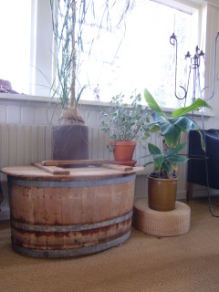 作業台の上に何やらかわいい計りが。やはり義父さんが説明してくれたのですが、上の塩樽が置いてあるようなお店で実際に使われていた計りだそうです。これで卵や石鹸を計っていたのでしょうか?想像が膨らみますね♪